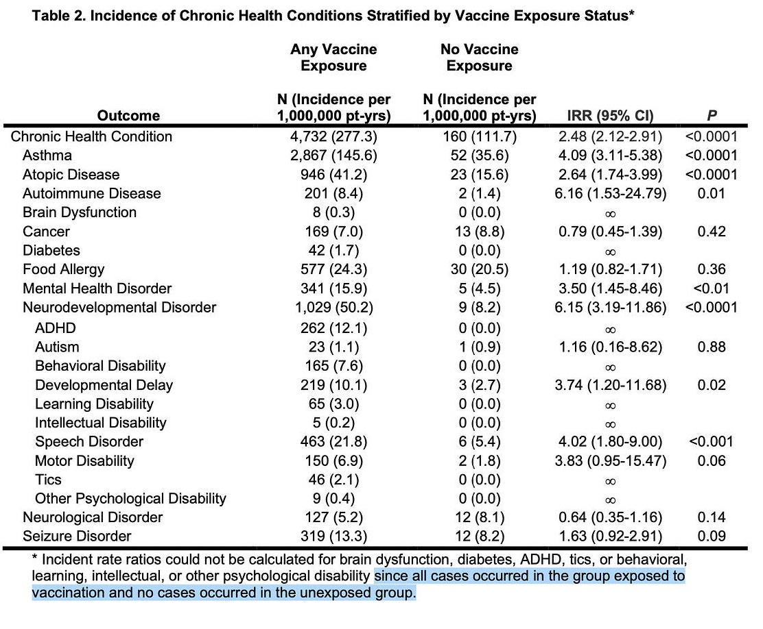 This study, to our knowledge, includes the largest cohort of children completely unexposed to vaccination, with observation in some subjects up to 18 years… PROOF HERE